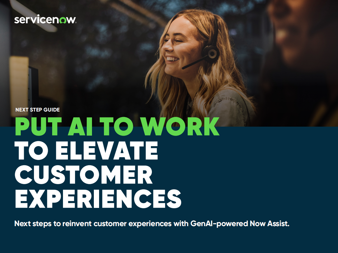 Streamline the customer experience from start to finish with generative AI. GenAI -powered Now Assist makes it easier than ever for customers to self-solve, empowers your agents to quickly resolve complex cases, and enables field technicians to fix issues on the first visit with work order summarization. Read this guide for insights on implementing GenAI for customer service across the enterprise—and learn why leveraging a single platform is the best way to accomplish it.